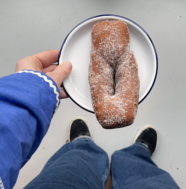 Bløddej med kardemomme vendt i syrligt sukker med vanilje.