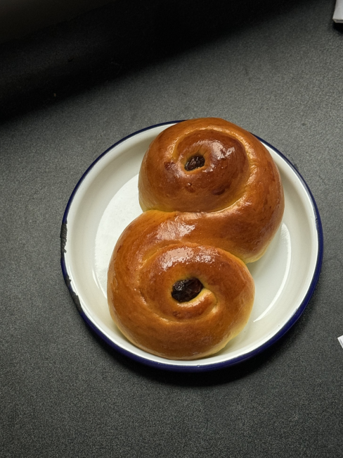 Bløddej med kardemomme, marcipan og safran.